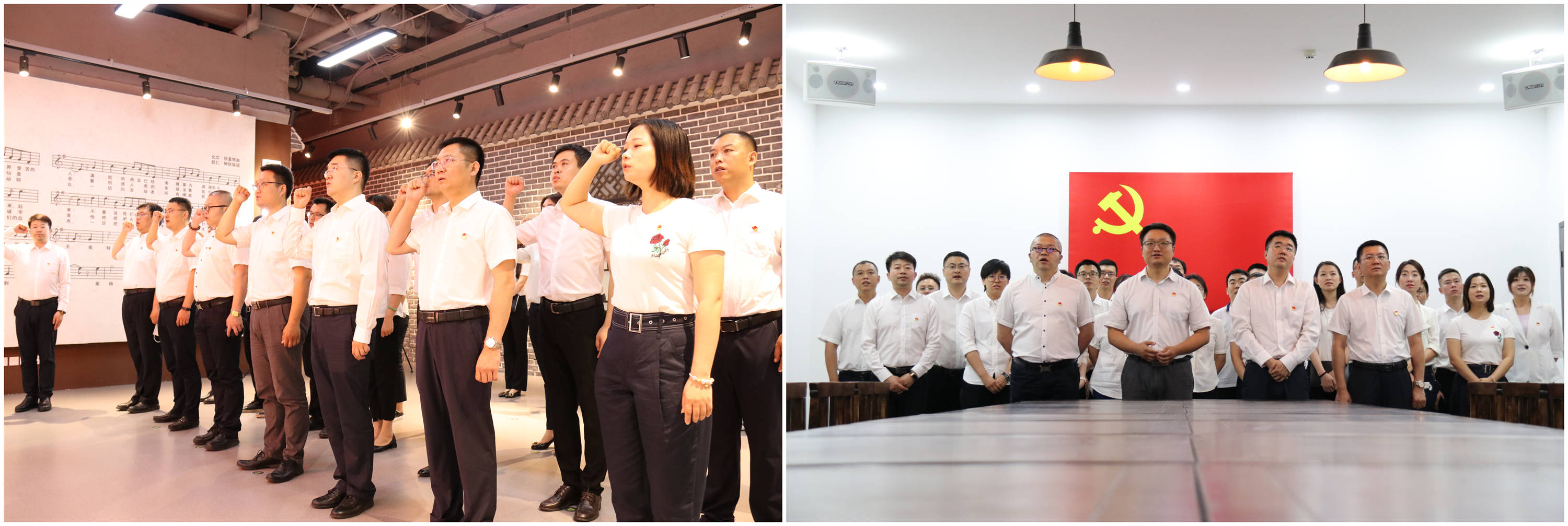 在紅色印記展區(qū)前,全體黨員跟隨講解員的步伐,翻開(kāi)紅色記憶,開(kāi)始了本次參觀之旅。一張張圖片、一個(gè)個(gè)生動(dòng)故事,讓大家感受到了在九十九年波瀾壯闊的歷史進(jìn)程中,這座城市所孕育出的沈陽(yáng)共產(chǎn)黨人不屈不撓、一往無(wú)前、奮勇前行、爭(zhēng)取勝利的革命精神。在紅色基因展區(qū),支部全體黨員面向黨旗,一字一句重溫錚錚誓言,感受涌動(dòng)的初心;在紅色講堂,全員高聲齊唱《我們走在大路上》,從歌曲里收獲力量,激發(fā)前行的動(dòng)力。